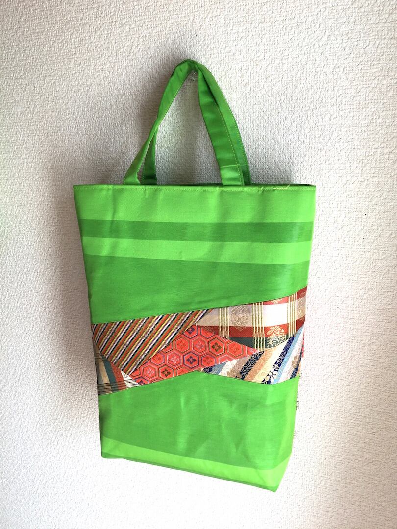 鮮やかなグリーン地に、貴重な布地が集結し、