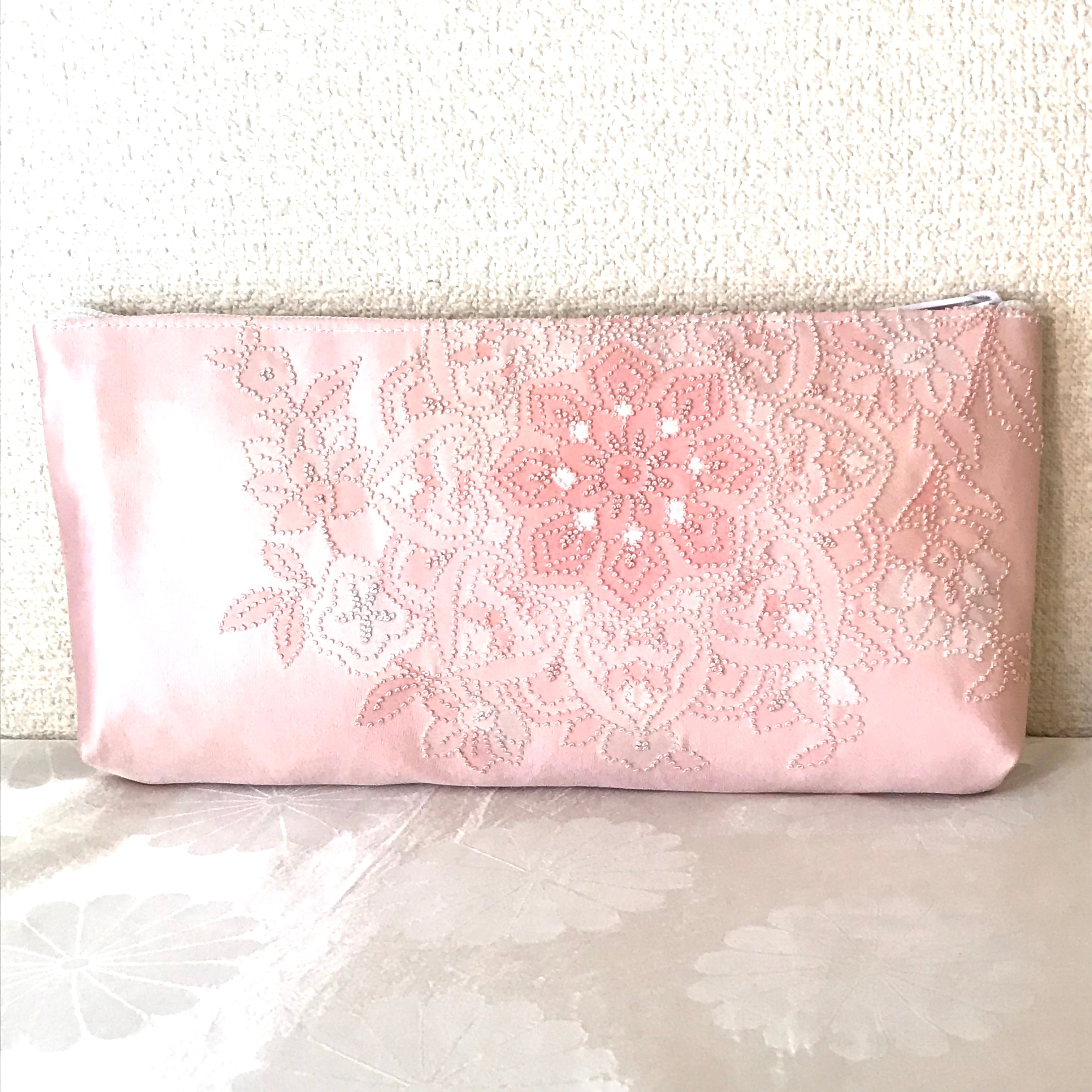 【さがら刺繍の花園】西陣帯のクラッチバッグ