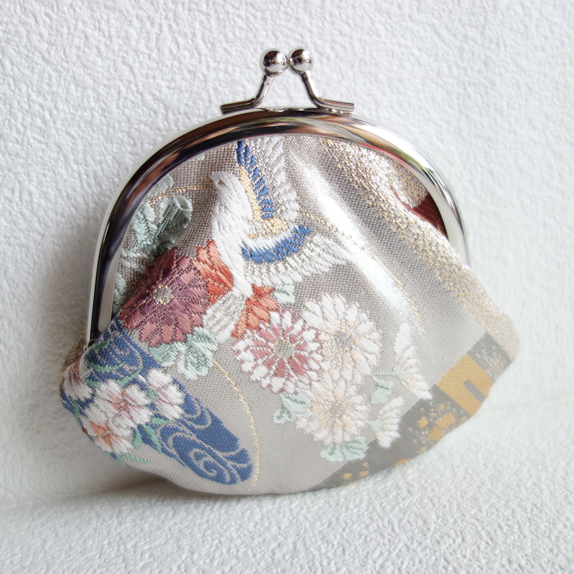 【プラチナ箔・鳥に牡丹】本帯がま口ケース