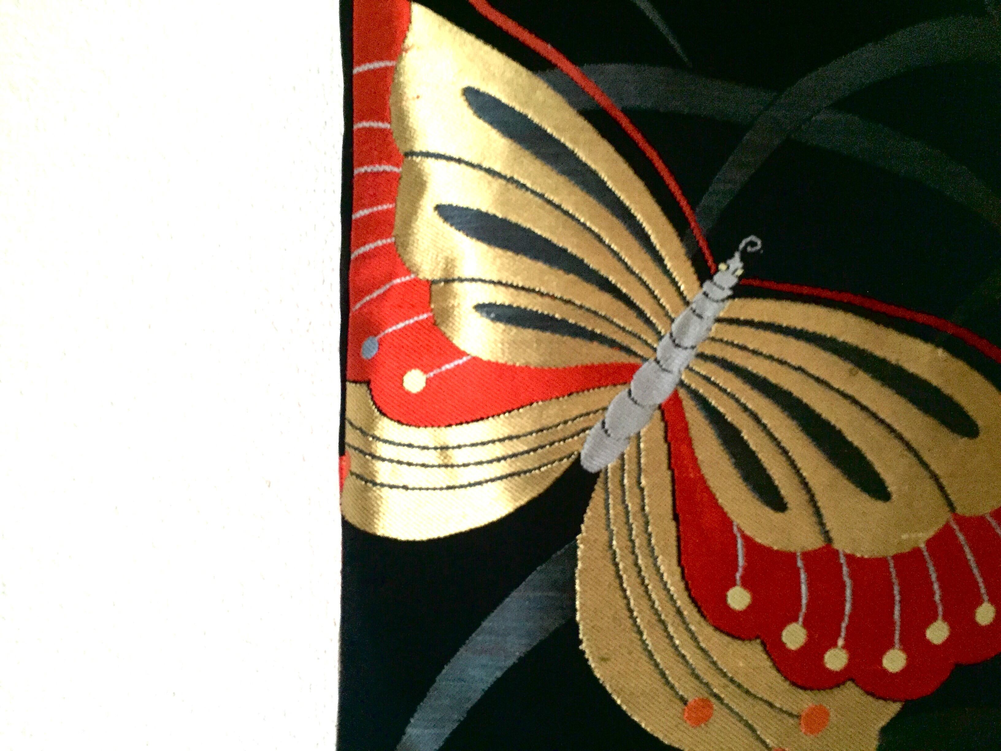 漆黒に金の羽を広げる蝶が