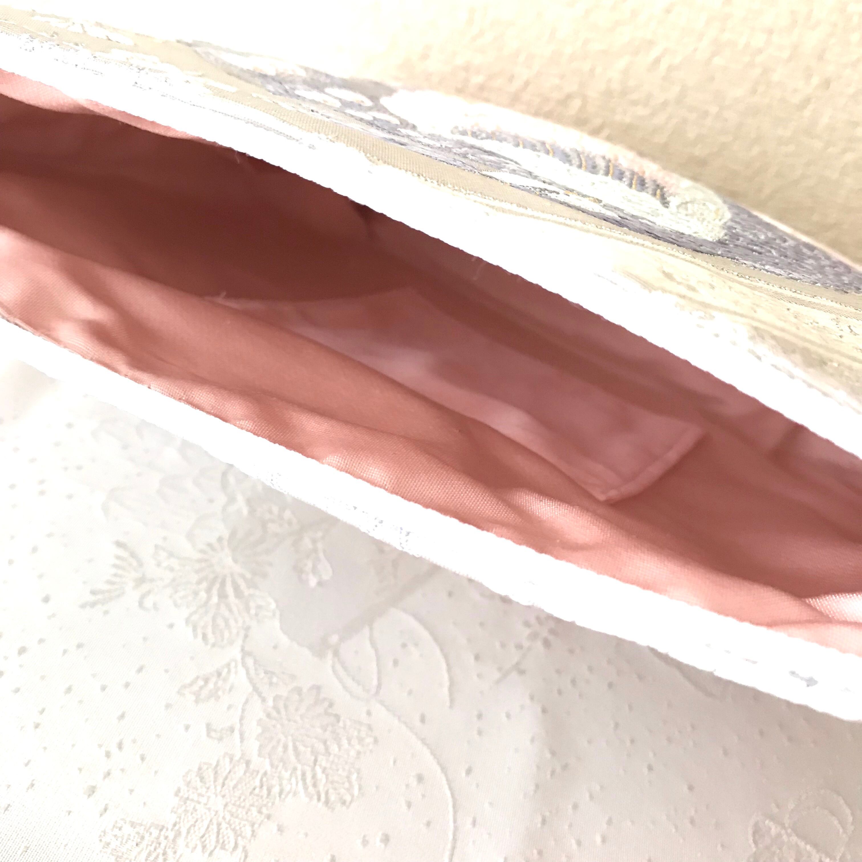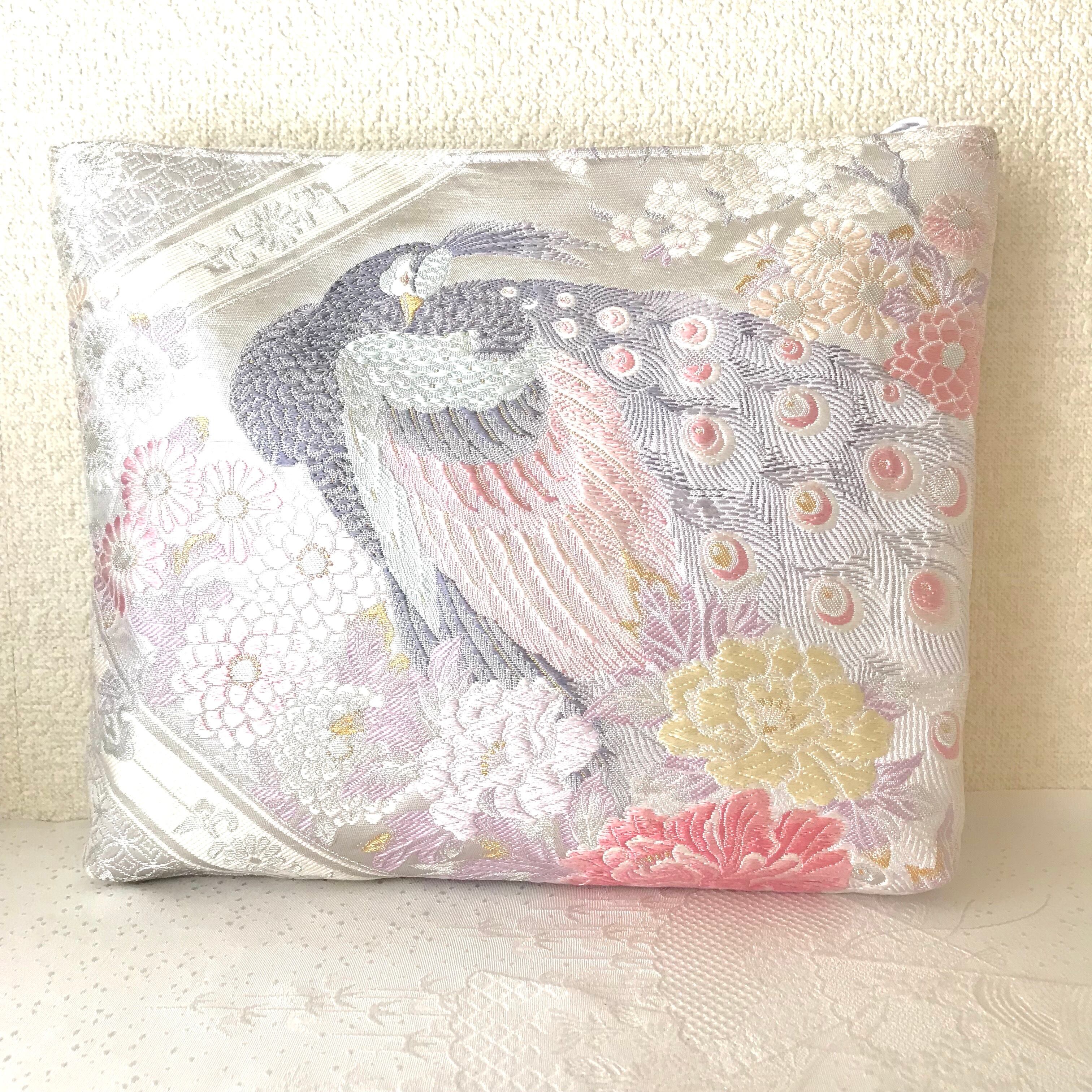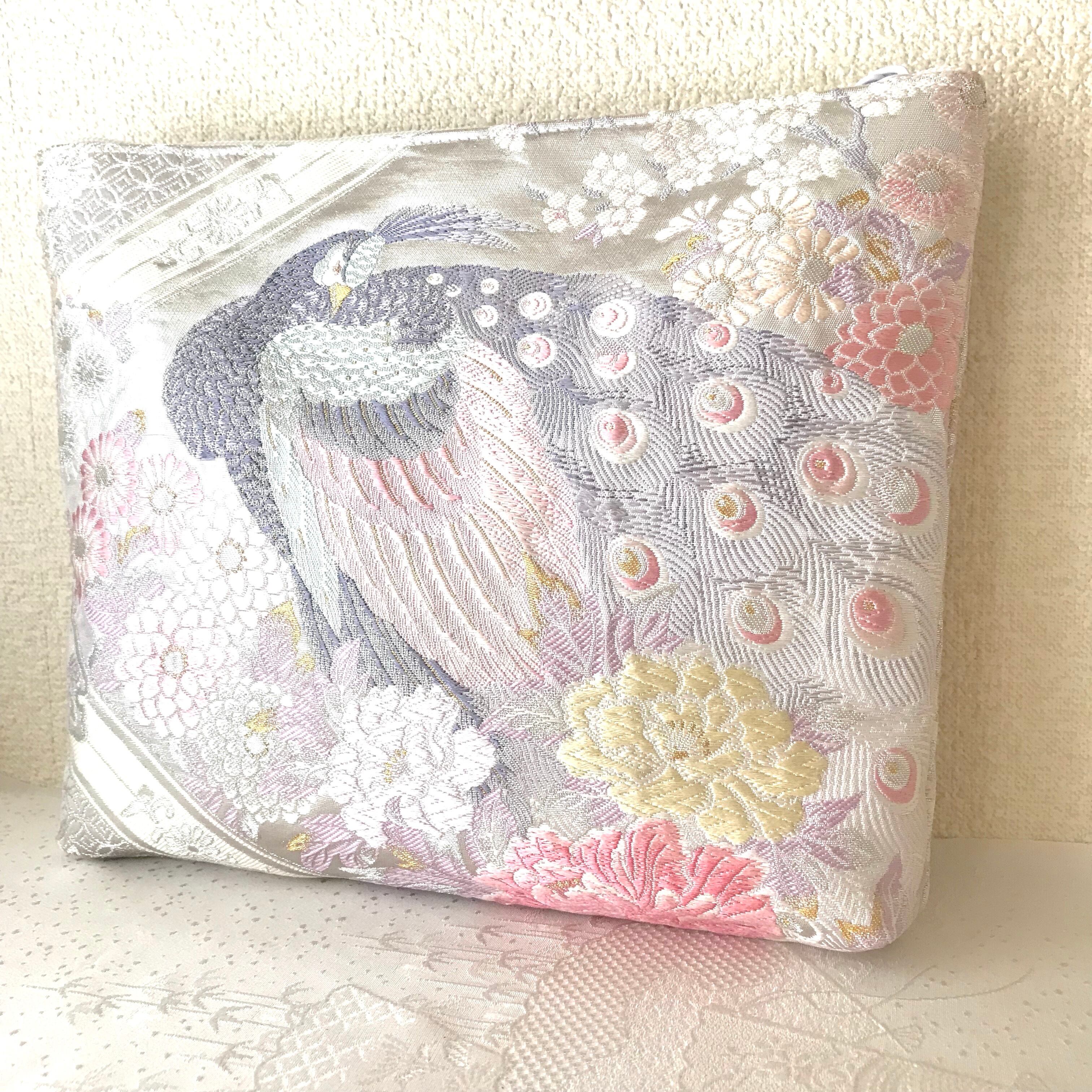 【王妃の孔雀】プラチナ西陣帯のクラッチポーチ